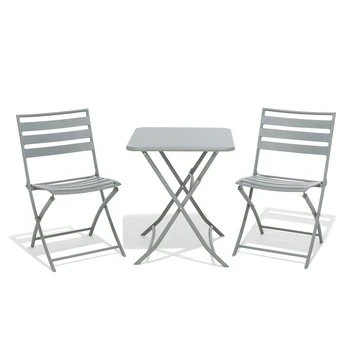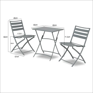 De bistroset Rochelle bestaat uit 1 vierkant tafeltje en 2 stoelen gemaakt uit staal in de kleur antraciet. Zowel het tafeltje als de stoelen zijn inklapbaar, zodat je ze makkelijk aan de kant kan zetten. Ideaal in kleine ruimtes, zoals het balkon van je appartement of een bijterras.
