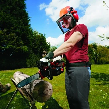 De BLACK+DECKER accu kettingzaag GKC1825L20 is een compacte, handzame lichtgewicht 18V Lithium-Ion kettingzaag met een zwaardlengte van 25 centimeter. Doordat de kettingzaag snoerloos is heeft u volledige bewegingsvrijheid. De CKC1825L20-QW is voorzien van SDS kettingspanner zonder gereedschap, automatische kettingsmering en Carlton ketting. Hierdoor werkt hij veilig en probleemloos. De krachtige accu van 2Ah zorgt voor een lange werktijd en zaagt ca. 220×3,5cm takken per acculading. De kettingsnelheid bedraagt 3,5m/s.