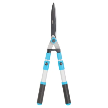Deze GAMMA heggenschaar is geschikt voor het snoeien van heggen, buxussen en coniferen. De telescopische armen van de heggenschaar zijn verlengbaar van 33 tot 55cm en de aluminium handvaten van de snoeischaar zijn voorzien van anti-slip rubber waardoor u een goede grip heeft. De messen van de schaar zijn geproduceerd uit gehard chroom S50C wat zorgt voor een rechte, scherpe snede. Daarnaast hebben de messen een tefloncoating, wat het snijden en reinigen van de messen makkelijk maakt. Maak na gebruik de metalen gedeeltes van de heggenschaar schoon met water en spray of smeer deze in met teflonspray of olie; op deze manier blijft de kwaliteit behouden.
