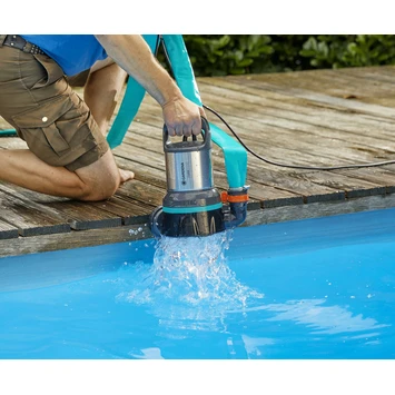 De helderwaterpomp 11000 van GARDENA, het toonaangevende merk voor hoogwaardige en moderne tuingereedschappen in Europa met meer dan 40 jaar ervaring op het gebied van drainage, irrigatie en pompen voor huishoudelijk gebruik. De helderwaterpomp 11000 is een krachtige en efficiënte dompelpomp met een laag energieverbruik voor de tuin, de kelder en vele andere toepassingen. Overal waar helder of slechts licht vervuild water moet worden weggepompt, bijvoorbeeld in een ondergelopen wasruimte, kan de innovatieve pomp u laten zien wat hij kan, voel de kracht van GARDENA pompen. Hij wordt de 11000 genoemd omdat hij tot 11000 liter water per uur kan pompen. Dit wordt bereikt door de krachtige en zeer efficiënte 450 W motor. Zo kan een maximale opvoerhoogte van 7 meter bij een druk van 0,7 bar worden bereikt. Bovendien biedt de drainagepomp een vlakke aanzuiging tot 2 mm. Hierdoor kan bijna al het water van de vloer van een overstroomde ruimte worden afgevoerd, waarna de vloer in een mum van tijd eenvoudig kan worden drooggeveegd. Door de praktische handgreep kan het apparaat eenvoudig worden getransporteerd en veilig worden opgeborgen. Omdat de Clear Water Pump 11000 een keramische schacht met drievoudige afdichting heeft, is hij gemaakt om lang mee te gaan. Bovendien ziet hij er door de gebruikte roestvrijstalen elementen en het elegante design modern en visueel aantrekkelijk uit. Het nieuwe, eenvoudige slangaansluitsysteem van GARDENA is een moderne en handige ontwerpkenmerk. De pomp kan worden aangesloten op slangen met een diameter van 25 mm (1″) of 38 mm (1 ½”). In combinatie met een G1″-schroefdraad heeft u nog meer aansluitmogelijkheden, zoals het GARDENA Profi-systeem. Dit maakt de efficiënte dompelpomp van GARDENA bijzonder veelzijdig in tal van situaties, de ideale aanvulling voor tuinen, kelders of zwembaden
