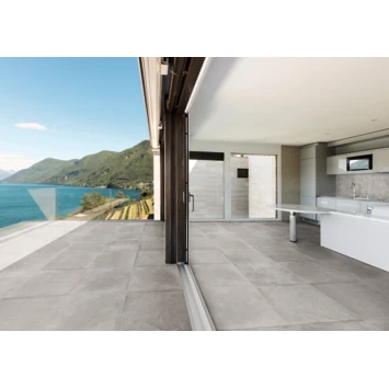 Deze keramiek op beton terrastegel vormt een unieke hybride combinatie; een 1 cm dikke keramische tegel op een 3 cm dikke betonnen onderlaag. Deze keramische boventegel is onlosmakelijk verbonden met een waterdoorlatende betonnen โgeoโ onderlaag met geรฏntegreerde afstandshouders.