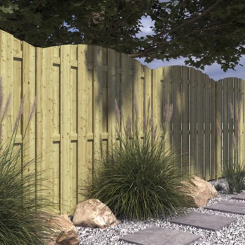 Schutting Jumbo is gemaakt van 15 geschaafde grenen planken. De planken zijn bevestigd met behulp van geschoten schroeven. Het grenenhout waar de schutting uit bestaat is geïmpregneerd en daardoor beter bestand tegen weersomstandigheden. Dit artikel is een toog variant, wat wil zeggen dat deze aan de bovenkant rond is afgewerkt. Schutting Jumbo is 1 meter 80 hoog en 1 meter 80 breed. De afzonderlijke planken zijn 13,5 centimeter breed en 1,3 centimeter dik. De schutting Jumbo heeft een gemiddelde privacy, wat te maken heeft met het aantal planken, de plankmaat en de mate van overlap. Deze schutting heeft een levensduur van ongeveer 10 jaar en kan na 5 jaar behandeld worden met een tuinbeits als bescherming voor het hout. De natuurlijke eigenschap van hout zorgt verder voor demping van het geluid.